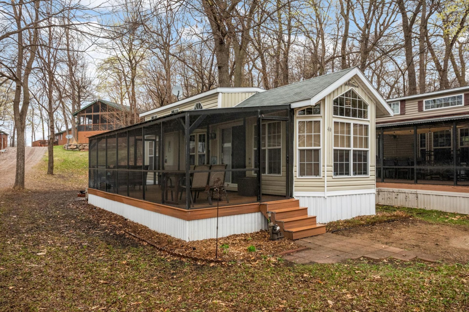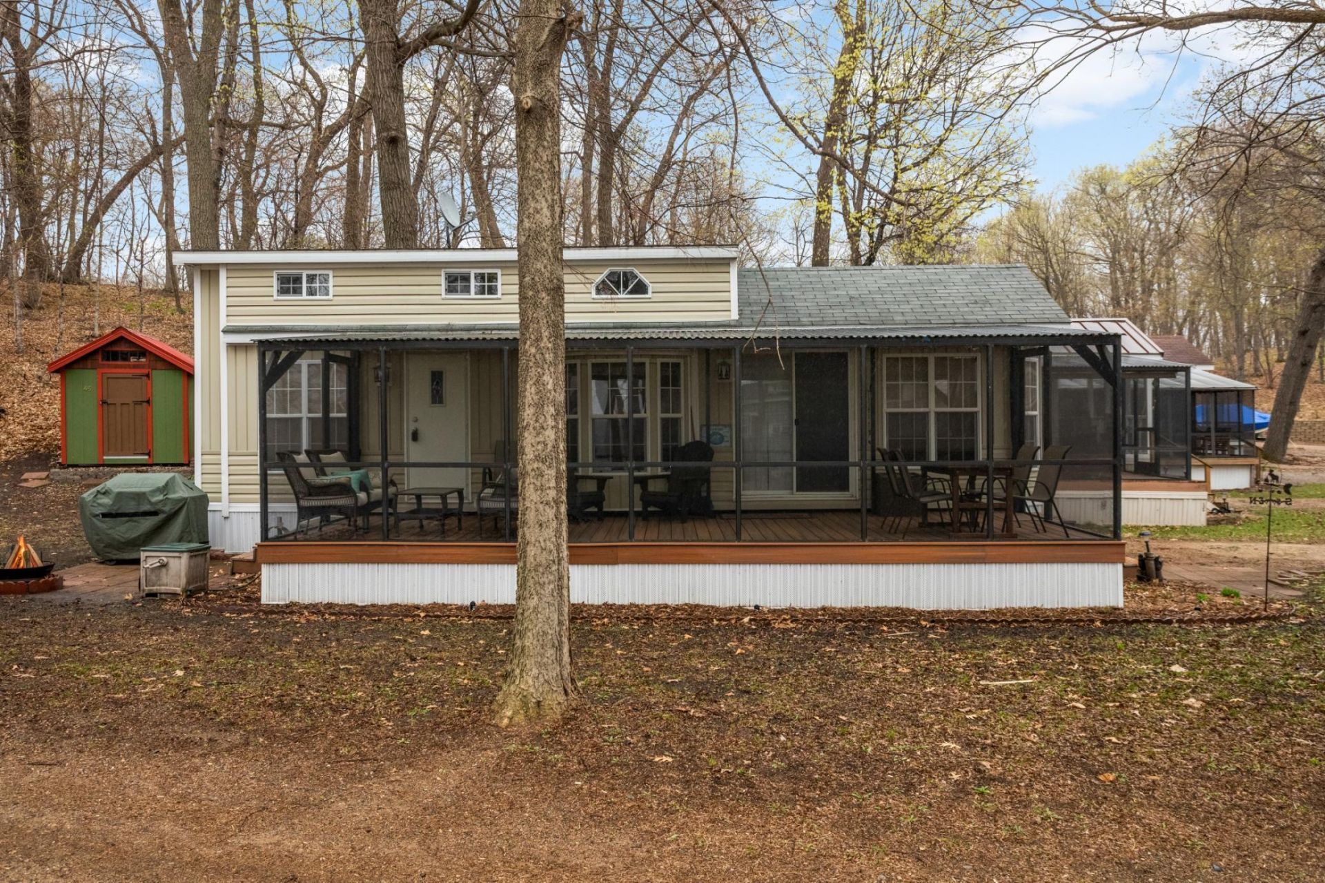 Escape to easy lake living with this 2006 Breckenridge 12x34 park model in desirable Timberwoods Resort Association on Lake Augusta. This is the perfect low-maintenance getaway where you can enjoy summer at the lake without the upkeep. Inside, you'll find a bright living space with vaulted ceilings, ideal for relaxing after a day on the water. Step outside to the expansive 10x28 maintenance-free screened porch, perfect for entertaining or unwinding while taking in peaceful lake views. A dock slip is included, giving you direct access for your boat or pontoon, and the channel leads you to Clearwater Lake with nearly 3,200 acres to explore. The layout features a main floor bedroom plus a loft with two additional sleeping areas, offering plenty of space for guests. An 8x8 storage shed adds convenience for all your lake gear. If you've been dreaming of an affordable, turn-key way to enjoy lake life, this is it.