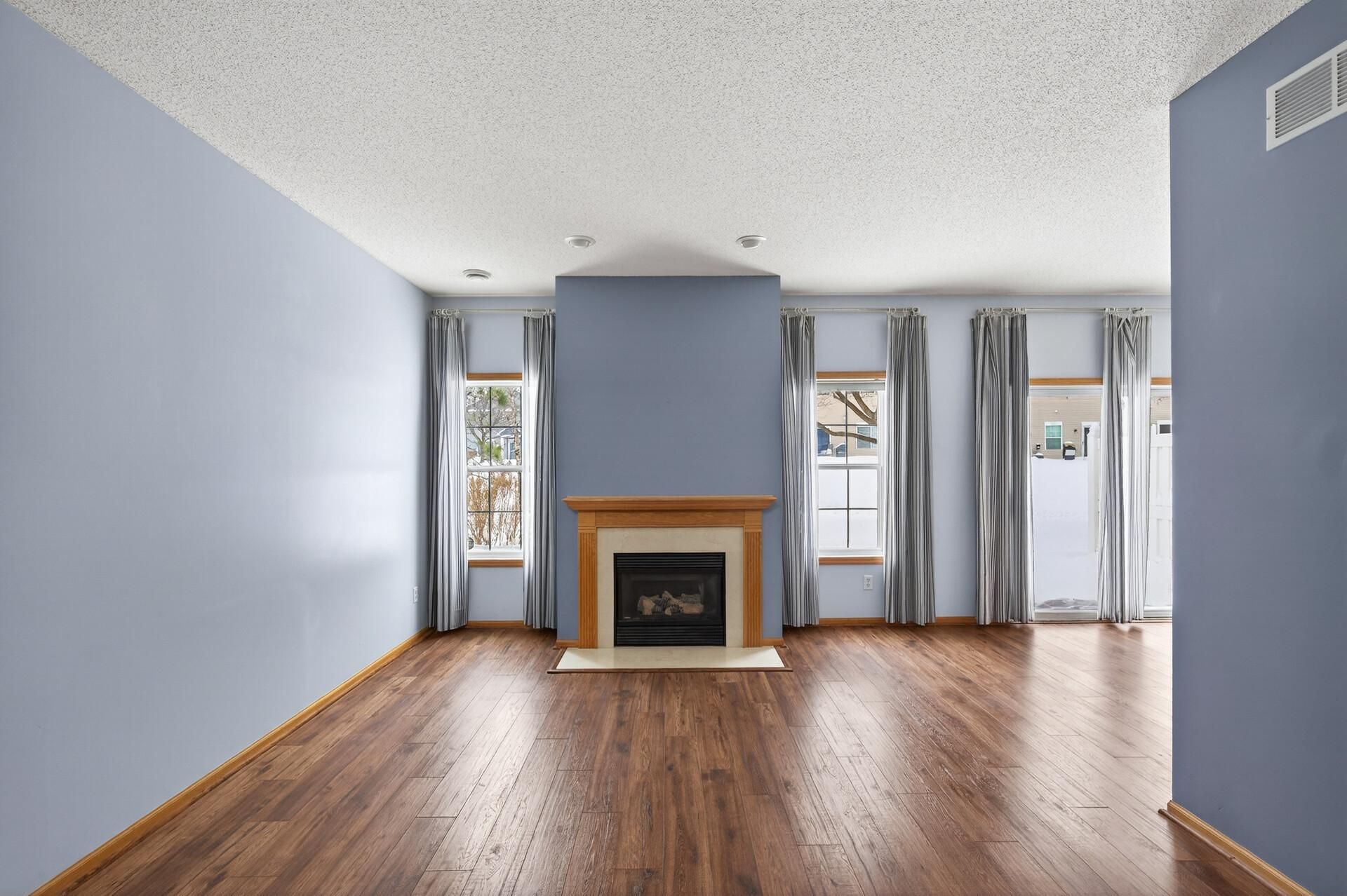 Don't miss this fantastic two-level, 2-bedroom, 2.5-bathroom condo (feels like a townhome) in a well-maintained, private community! An airy 2-story foyer and open staircase greet you. Enter into the main floor living room featuring a gas fireplace flanked by windows looking out to the large yard. The nice-sized kitchen has ample storage, a pantry, and is open to the dining area and patio door. Main floor laundry, and half bath. Warm laminate wood flooring throughout the entire main level and natural woodwork throughout the home. The upper level boasts a large, comfortable loft space, generous-sized guest bedroom and full guest bath. The large primary bedroom features a vaulted ceiling, walk-in closet, and ensuite bathroom with great vanity storage, double sinks, and large walk-in shower. Your 2-car garage has an insulated garage door, keypad access, and space for storage. Brand new roof in 2025. Your walk-out semi-private patio leads to an expansive yard and the community's private walking/biking trails, heated swimming pool, pergola picnic area, and playground. Pets are allowed. This great Apple Valley location is close to schools, shopping, restaurants, public transit, library, parks, and more.