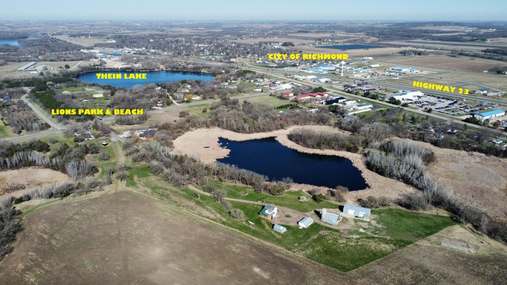 Tucked away on 7.5 picturesque acres overlooking a peaceful pond, this property offers privacy, character, and proximity convenience. Situated across from Lions Park, which offers a picnic shelter, playground area, green space and a public swimming beach. The property truly shines outdoors with an impressive array of outbuildings: a 40x24 three-stall garage, 74x30 pole shed, 30x16 tool shed, and a charming log playhouse or storage shed. This quality built 1920s home boasts original craftsmanship and woodwork with timeless appeal. The main level features an abundance of natural light, a spacious kitchen and dining area, a large living room with hardwood floors, and a cozy family/sitting room. You'll also find a convenient laundry area with a bright sunroom, full bathroom, and a main-floor bedroom. Upstairs offers three additional bedrooms and a generously sized bathroom. For comfort and convenience, each bedroom and the living room are equipped with individual ductless mini-split systems for heating and cooling needs. There is also a wood stove for supplemental heating. Recent improvements provide peace of mind, including a brand new drilled well (August 2025), new 200-amp electrical panel, and a new septic system installed in 2023. If you enjoy boating or fishing, this property is approximately 2 miles from the public boat launch to the Sauk River Chain of Lakes consisting of 14 connecting lakes. With ample storage, shop space, and a private setting, and a convenient location, this rare opportunity is ready to welcome its next owner.