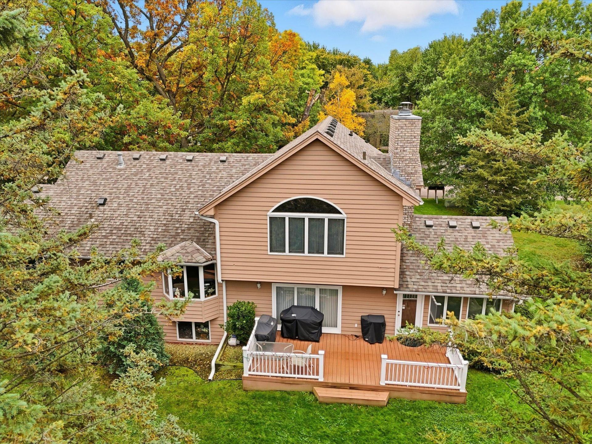 Quality built custom Mod 2 Story sits on .43 acre cul-de-sac lot w/excellent curb appeal and a partial privacy fenced level backyard. Amazing open main floor plan features: Vaulted Living Rm w/hardwd flrs and Dining Room both w/lots windows for lots of natural light. Open Kitchen w/hardwd custom flrs, granite cnter tops, huge island, double ovens, gas cooktop, butler pantry counter and recessed lights. Spacious open Family Room w/cozy wood burning see-thru fireplace, hardwd flrs and sliders to maint-free deck. Gorgeous Sunroom w/plenty of SW exposure windows, see-thru wood burning fireplace and deck access. Spacious 3rd Bdrm w/hrdwd flrs, double closets and French doors, updated ¾ Bathrm and Lndry Rm. Upper level features: Amazing vaulted Primary Bedroom Suite offers cozy fireplace, large windows w/great views and walk-in closet. Prime On-Suite Bathrm w/granite top double vanity, full tile shower w/glass door + tile flrs. 2nd Bedroom and Full bathroom. Lower Level features: huge Amusement Room w/custom wet bar, lookout windows for lots of natural light, Exercise Room, Half Bathroom and storage room. High efficiency furnace, new water heater 2025 and architectural shingle roof 2021. Oversized two car garage w/built-in work bench and plenty of storage. Enjoy year round BBQs on private maint-free deck. Private wooded level lot is great for kids/pets and entertaining. Quiet cul-de-sac location ideally located close to parks, shopping and schools